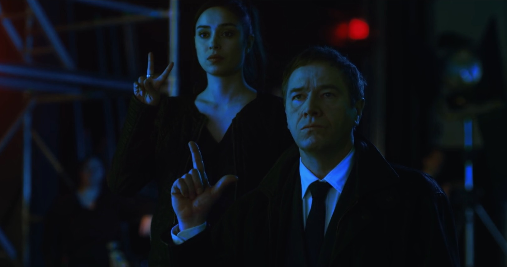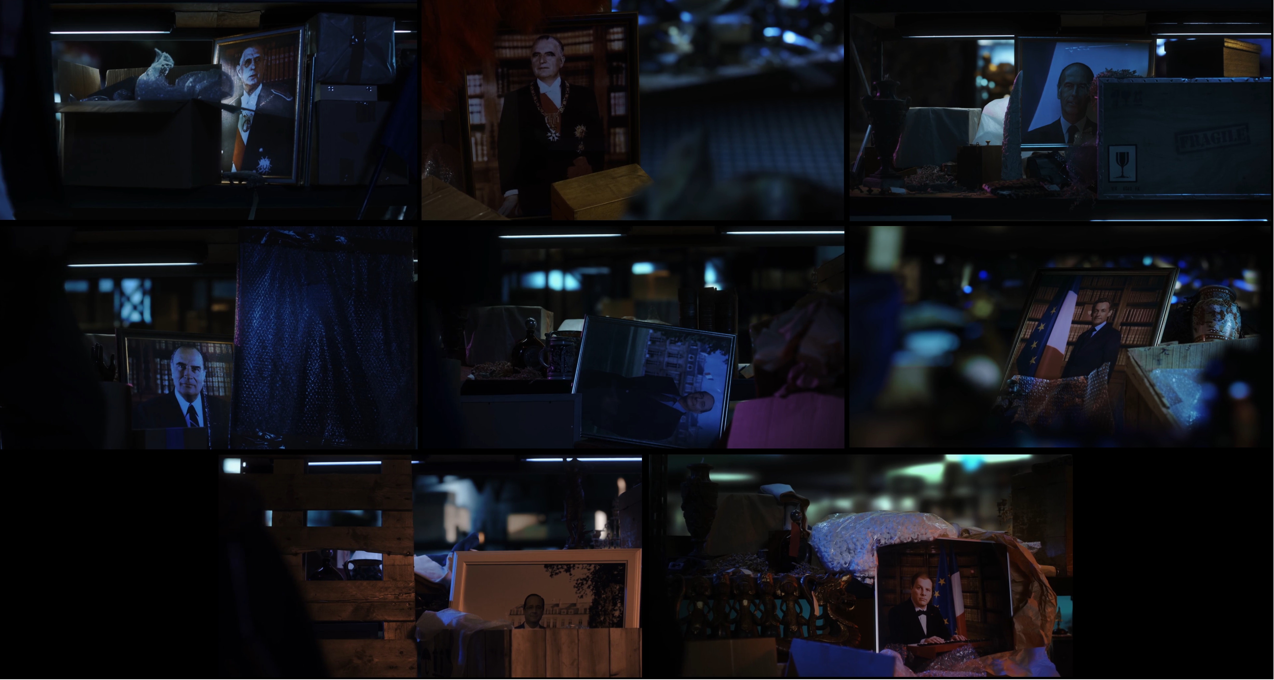 De coulisses, il en est déjà question dans la première scène du film, celle-ci révélant les dessous d’une émission télévisée dont l’invité est le Président Bird. Le principe du show est simple : Bird a face à lui un panel de Françaises, « dont certaines ont de bonnes raison d’être très en colère ». Il doit en choisir une au hasard pour qu’elle lui pose une question. Sa cote de popularité étant au plus bas, ses deux conseillers ont tout anticipé pour éviter une nouvelle mauvaise surprise. Premièrement, Bird a l’interdiction de chanter avant la fin de l’émission. Ensuite, il est prévu qu’il interroge la Française n°2, à qui on a préalablement présenté une série de questions. Lorsque sa conseillère fait lire des propositions à la candidate choisie, elle lui précise qu’il s’agit de suggestions et qu’elle peut se sentir libre de lui poser les questions qu’elle veut, avant d’entourer une note sur sa feuille en précisant « celle-là, ok ? ». En deux minutes, nous comprenons que cette rencontre entre Bird et ses citoyennes n’a rien d’authentique ; tout est calculé, arrangé et truqué pour garantir une prestation qui soit bénéfique au président. Nous pouvons d’ailleurs retrouver cette absence d’authenticité thématisée dans le procédé de tournage, entièrement accompli sur fond vert.