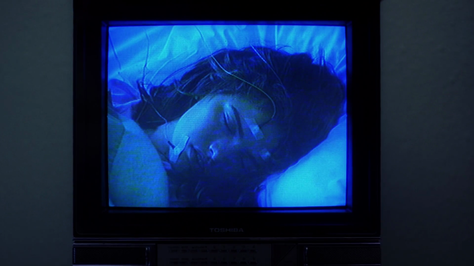 Si de telles explications scénaristiques couplées au système répétitif des scènes cauchemardesques pourraient fournir au spectateur une certaine compréhension du régime onirique, Wes Craven continue à déjouer les attentes possibles. Le cinéaste le rappelle à l’occasion de la huitième séquence de rêve, lorsque Nancy se fait hospitaliser. Dans cette séquence clinique en effet, la protagoniste se trouve dans un cadre scientifique et entourée d’adultes. La mise en rêve n’est jamais autant encadrée et soulignée que dans ce passage, puisque les docteurs suivent l’évolution de Nancy au travers des différentes étapes du sommeil, commentant chacune des phases. Pour la première fois, le spectateur suit en temps réel et sans artifice l’entrée en rêve d’un personnage : à 47’25’’, le médecin annonce que le personnage entame un sommeil profond, avant d’indiquer à 47’38’’ : « She could dream at any time now ». Connaissant les enjeux découlant de l’endormissement du personnage – le marquage du sommeil progressif de la protagoniste scandé par les médecins s’affichant alors comme des avertissements soutenus face au déroulement de la scène –, le spectateur s’attend à voir surgir Freddy à partir de ce moment-là. Contre toute attente cependant, aucune vision cauchemardesque n’apparaît. Pour la première fois où l’entrée en rêve s’avère aussi explicite, le point de vue spectatoriel demeure externe et la scène reste anti-climatique et évite toute emprise horrifique, malgré les agitations de Nancy qui finissent par la réveiller – ce qui laisse supposer qu’elle se trouvait sous le joug de son oppresseur. Lors de cette scène, Wes Craven déjoue les attentes des spectateurs en déconstruisant le schéma onirique utilisé jusqu’alors. L’encadrement parental et le milieu scientifique, caractérisés par des paramètres narratifs et visuels – le montage, le suivi sur Nancy, les diagrammes sur l’ordinateur du docteur –, n’est ici d’aucune utilité face à la menace incarnée par Freddy. Le réalisateur rappelle ainsi aux spectateurs l’impotence absolue des adultes et du milieu scientifique, fournissant également un avertissement sur le caractère inattendu des événements oniriques et horrifiques qui vont s’abattre, simultanément, sur les personnages et sur les spectateurs.