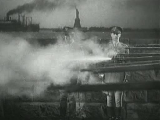 La plaidoyer en faveur de Roosevelt est donc une dimension inévitable du film, qui promeut sans appel le socialisme nationaliste lors de l’ultime stratégie de Hammond : conviés à une réunion en plein océan, les leaders du monde se réunissent autour du président américain, qui conduit le sommet en direct à la radio, pour que les peuples de la Terre entière soient témoins de l’histoire. Lors de cette scène décisive, il obtient des nations étrangères qu’elles opèrent un désarmement total de leurs pays, afin de rediriger les fonds vers le remboursement des dettes dues aux États-Unis suite à la Première Guerre mondiale. Là encore, le script fait preuve d’une acuité géopolitique rare, et propose que l’incapacité des pays à s’acquitter de leurs dettes pourrait être contournée à travers l’abandon définitif de la production militaire. En 1919, l’économiste John Keynes publiait son traité Les Conséquences économiques de la paix, dans lequel il stipulait que les contraintes imposées aux vaincus par le traité de Versailles étaient trop importantes, et se révéleraient source de crise économique. Il avait en partie raison, car l’histoire nous apprendra finalement que l’Allemagne a bel et bien connu l’une des pires crises jamais vécues en Europe, mais qu’elle consacra également ses fonds disponibles au réarmement du pays. D’une pierre, deux coups, le fantasme américain du grand dictateur Hammond aurait fait des États-Unis la plus grande puissance économique au monde, et se serait assuré que plus aucune nation étrangère ne soit en mesure de mener la prochaine guerre, qu’il prédit comme étant des plus dévastatrices, impliquant des bombes cataclysmiques, et engendrant une dépopulation sans précédent !