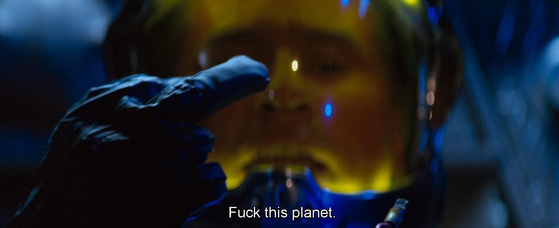 Peu de choses à retenir donc, si ce n’est l’ultime outrance que représente le doigt d’honneur adressé à la planète (et, de fait, à la caméra, c’est toujours agréable) par Val Kilmer lorsqu’il parvient enfin à quitter le sol martien et juste avant qu’il ne se fasse récupérer en vol par Carrie-Anne Moss (qui sera restée bloquée dans son vaisseau pendant toute la durée du film) dans une séquence de sauvetage similaire à celle de Seul sur Mars, le souci de crédibilité en moins.