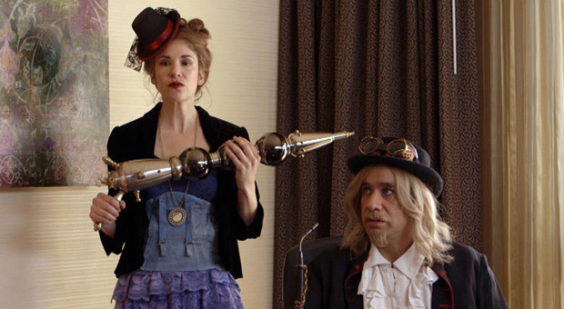 Portlandia a gagné en légitimité dans le milieu, au fond très hiérarchisé, de la comédie US en s’attirant les louanges d’un Jerry Seinfeld, concluant avec fausse modestie sur la portée de son avis (« Well it’s my opinion. What do I know about comedy ? »). L’éloge est en un sens logique. Seinfeld, la sitcom qui définit le genre pour les années 90, construit chacun de ses épisodes sur un sens de l’observation qui fait de sa vedette un génie de la montée en épingle (sur le mode « avez-vous remarqué ? »). Aussi différents que soient ses personnages, Portlandia joue de même d’un ressort observationnel. Prendre l’attendu, ce qui ne se remarque pas ou plus à force d’être présent sous nos yeux, pour en faire jaillir de l’inattendu[1]. La pique sur laquelle Seinfeld conclut son adoubement pourrait cependant s’avérer elle aussi révélatrice. Le risque que courre Portlandia n’est pas tant celui d’une réprobation mal placée devant des mouvements légitimes (cela, on croit l’avoir montré) que d’une forme de morgue, celle d’une satire du haut vers le bas, qui ne viserait plus le ridicule des puissants mais des relativement plus petits : vedettes contre velléitaires, artistes contre publics, ajustés au détriment des loufoques, etc. Chloë Sevigny en saison 3, en anonyme costumée telle pourrait l’être la guest elle-même, soit selon un modèle ordinairement favorisé par des filles à l’intelligence supérieure à la moyenne, pour se révéler une incarnation avérée de l’ineptie. La gêne qu’il y a à rire d’un concours de beauté pour chiens organisé par deux mendiants. Le nombre d’injonctions moralisatrices qui ponctuent la série (« get a job !», « stop nurturing your child !»), ce côté donneur de leçons quand Edward James Olmos recommande à un fan envahissant de Battlestar Gallactica d’aller consulter (mais où l’on devine, tout l’amusant de la situation, qu’il s’est déjà « dans la vie » retenu de le faire).