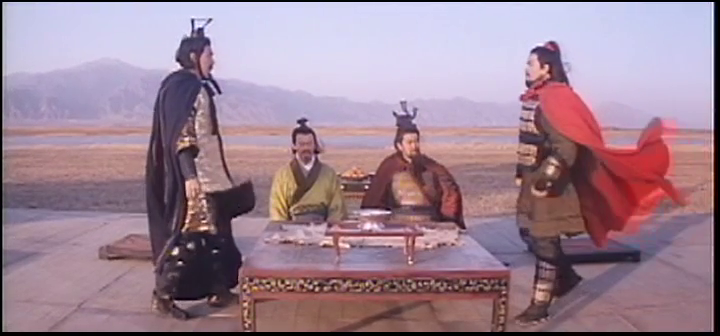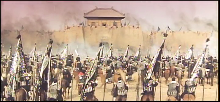 Cette stratégie de manipulation est ici employée pour une raison simple : faire de la transition Qin-Han le miroir des transitions qui ont et vont marquer la conscience collective hongkongaise, à savoir le passage du Kuomintang à la République Populaire de Chine d’un côté, et de la colonie britannique à la Région administrative spéciale de l’autre. Une scène remarquable renforce en outre cette idée, lorsqu’un groupe de soldats Qin est pris au piège dans le creux d’une colline, et sur qui l’armée de Xiang Yu lance d’immenses rouleaux de paille enflammés. Comprenant que rien ne peut plus les sauver, les guerriers Qin chantent alors leur solidarité funeste à l’unisson au travers de paroles glorifiant leur appartenance à un tout uniforme. Il s’agit là d’une représentation de la philosophie légiste, le courant de pensée dominant sous la dynastie Qin. Les légistes prônaient l’unité totale du peuple, le contournement des traditions et l’élévation de la loi administrative en tant que pouvoir suprême, ce qui donna lieu à de lourdes contraintes de surveillance et sanctions sur le peuple par les fonctionnaires de l’état. Cette approche prenait un chemin totalement opposé au confucianisme, qui est lui ancré dans les traditions et la morale. Le légisme ne répondait ainsi d’aucun code éthique, car la loi se suffisait à elle-même, et pouvait par conséquent élever les fonctionnaires au statut de tyrans. La comparaison entre le régime Qin et le régime communiste dans lequel Hong Kong sera bientôt intégrée lors de la sortie du film se révèle alors évidente. Comme dans un geste de poésie ironique, le dernier acte contient une séquence lors de laquelle les guerriers Han scandent un chant Chu pour leur faire croire que leurs terres ont été conquises et ainsi les faire déserter. Cet épisode a, selon les livres d’histoire, bien eu lieu, et constitue un bel exemple de complémentarité entre historicité et fiction. Et encore une fois, dans les deux cas, le résultat est le même : le peuple dont l’hymne est chanté vit ses derniers instants.