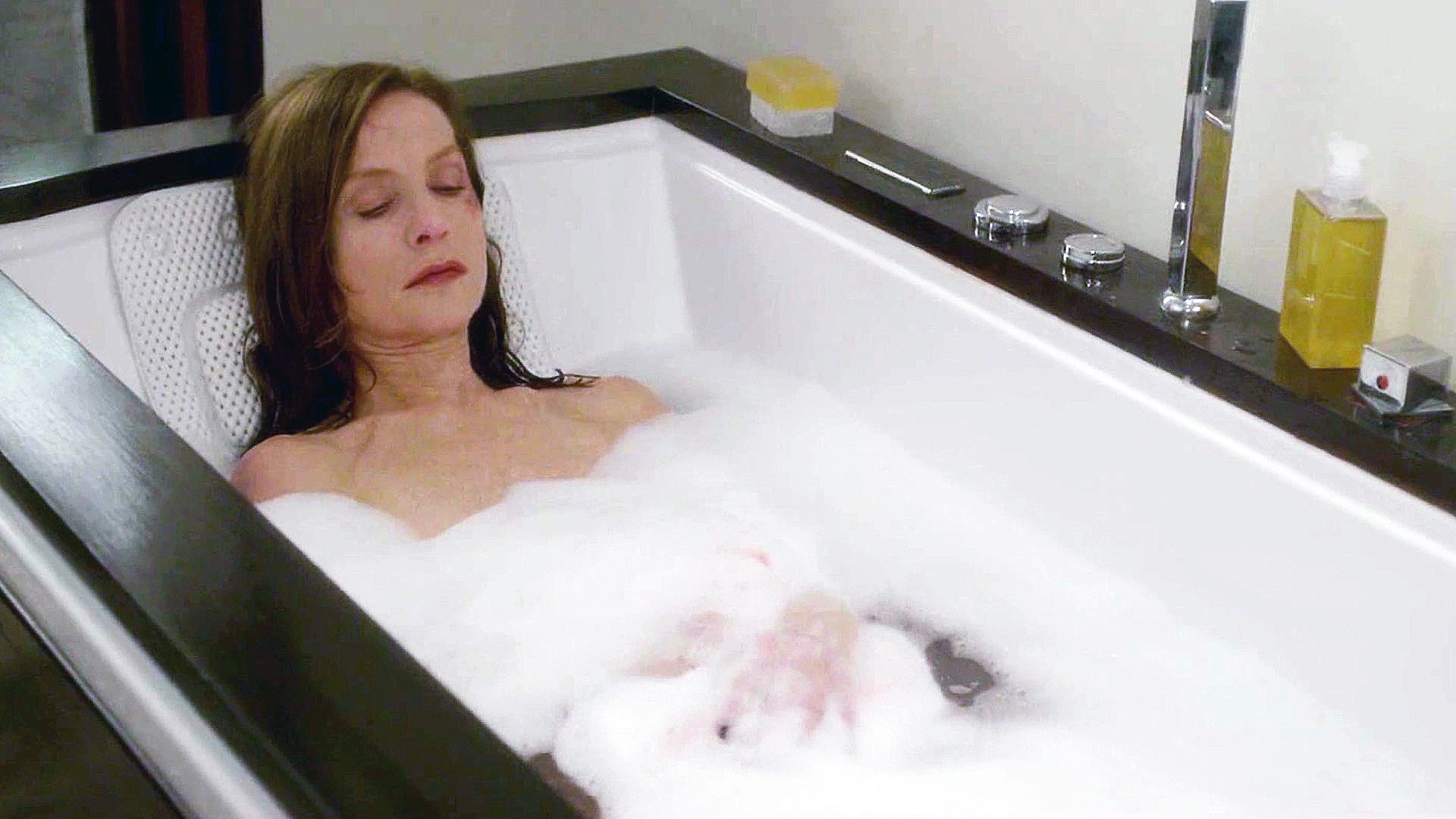 Il faut attendre de voir Michèle se relever et ramasser calmement les débris de vaisselle pour comprendre de quoi il sera question dans le seizième film du Hollandais. Etonnamment, la femme se lave en se coulant un bain. Si la scène offre l’opportunité d’une des plus belles images de la carrière de Verhoeven, elle en dit surtout long sur le caractère du personnage joué par Isabelle Huppert. À l’opposé de la douche qui lui aurait permis de se laver de la souillure, l’eau stagnante du bain ne s’avère en rien purificatrice. Voilà comment le cinéaste annonce l’étrange fascination, mi-vengeresse mi-érotique, que l’agresseur va dès lors exercer sur Michèle.