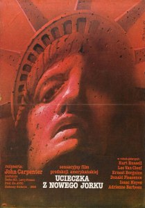 La Pologne et le Japon préfèrent quant à eux mettre en avant la Statue de la Liberté, peut-être pour souligner le caractère dystopique d’un Manhattan transformé en prison. L’imagerie employée en Pologne reste globalement vague, bien que l’expression de la statue incite à penser que l’on a affaire à de l’anticipation. Les versions nippones insistent également sur l’année située dans le futur, et ne s’interdisent pas l’ajout d’une tête flottante sur l’une des affiches.