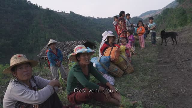 Il suffit d’un coup de pied dès le premier plan de Ta’ang, un peuple en exil entre Chine et Birmanie pour saisir de quoi il en retourne : un récit d’oppression. Les De’ang sont une minorité Birmane en proie depuis deux ans à la guerre civile, cette population se voyant prise entre les feux de la junte Birmane et de sa propre « Armée de Libération Nationale ». En fuite, poussés au nomadisme par la mouvance du conflit, certains de ses membres ont trouvé un refuge précaire en Chine voisine, qui ne voit pas cette vague de migration d’un œil spécialement charitable, pas plus que la frontière traversée n’intimide leurs poursuivants. Un trait frappant de ce groupe d’exilés tient chez ses adultes à la proportion féminine, en comparaison de celle d’hommes apparaissant à l’écran (bien que présents, autrement plus rares). Le film ne fournit pas d’explication au fait que les civils De’ang soient pour l’essentiel des femmes et des enfants (laissant par ce silence entendre que les pères et époux laissés hors-champs seraient, ou morts, ou impliqués dans le conflit, ce qui intrinsèquement revient au même). De fait, il ne fournit pratiquement pas d’explication tout court, le carton introductif s’en tenant à une mise en contexte minimale. Wang ne pense pas le cinéma comme une production de savoir, sa caméra tel un outil pédagogique, mais comme un prisme d’empathie, donnant à voir ceux qui sans sa présence demeureraient invisibles. Quelles que soient les raisons qui ont poussé ces personnes vers la frontière Chinoise, il ne ferait pas bon être à leur place.