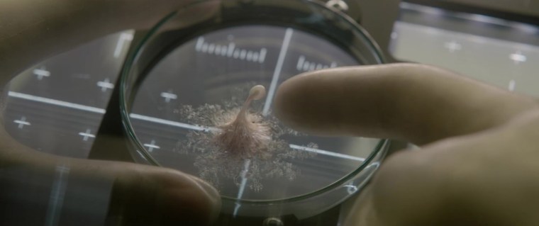 Vers la moitié du film, le biologiste Hugh Derry explique à ses compagnons que Calvin ne ressent aucune haine – ni aucune autre émotion – à leur égard, mais qu’il se contente de faire ce qu’il faut pour survivre. Mis en parallèle au titre du film, ce rappel permet d’établir que sans mort, il n’y aurait aucune vie, et vice versa. La vie est un processus destructeur par nature, qui n’aurait d’ailleurs aucune valeur spéciale si elle était éternelle. Or c’est précisément ce désir indomptable du perfectionnement de la vie qui mène l’humanité à sa ruine. On le comprend lorsque Derry révèle qu’il souhaite découvrir de nouvelles formes de vie dans l’espoir de révolutionner la médecine et, à terme, de remarcher (ou au moins d’offrir cette possibilité aux futurs handicapés). Impossible, alors, de ne pas penser à la synthèse que Brian Stableford propose avec son essai The Cosmic Horror, dans l’ouvrage Icons of Horror and the Supernatural :