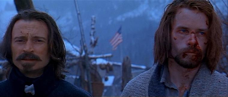 A ce propos, comment écrire sur Ravenous sans évoquer sa musique, étrange et brillante collaboration du fondateur de Gorillaz et de Michael Nyman, auteur de la BO de La Leçon de piano. Etrange, parce que les deux hommes ont travaillé séparément, Albarn ayant composé une grosse moitié des morceaux et Nyman le reste, sans se concerter à aucun moment. Brillante, parce que l’un comme l’autre s’est inspiré d’anciennes compositions folks, de même que de certains chants traditionnels amérindiens, se les réappropriant pour servir habilement le propos du métrage. L’idée géniale, du côté de Nyman, est d’avoir employé un orchestre entièrement constitué d’amateurs, donnant lieu à des musiques hésitantes et maladroites, qui participent au malaise du récit. Quant à lui, Albarn livre des thèmes répétitifs et entêtants comme il en a le secret, composés de boucles au crescendo imparable, quand il ne reprend pas avec une savoureuse ironie un chant chrétien annonçant le retour du Christ pour le thème de Boyd.