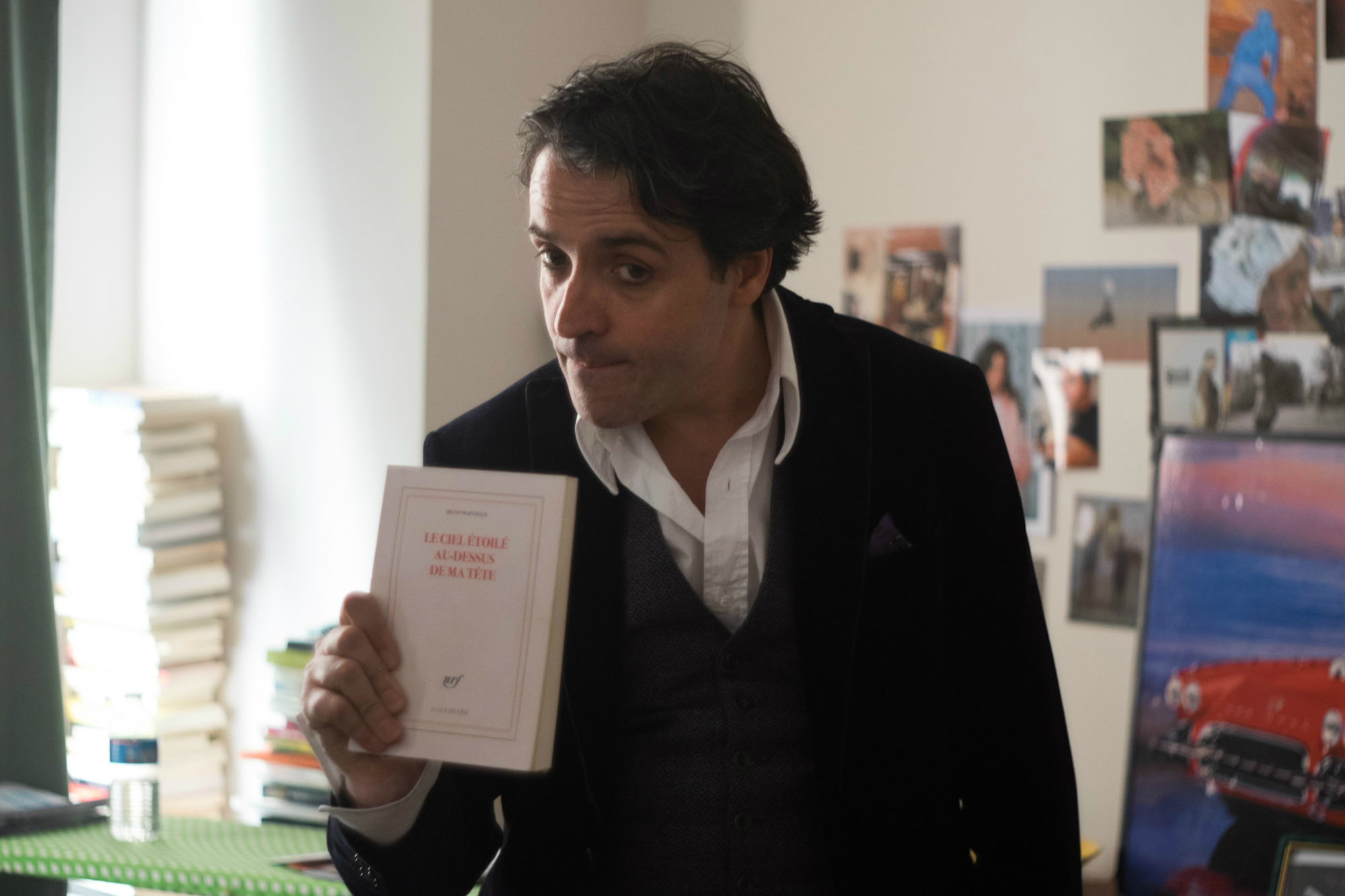 Une visite de ses parents (François Chattot / Michèle Moretti) ouvre vers les quatorze heures une journée qu’il entendait passer en compagnie de sa perruche. Accompagnés d’une certaine Sophie Andreu (Camille Chamoux), il en déduit d’abord (et les spectateurs avec) que ceux-ci viennent lui présenter une fille « de la communauté » (il la présume séfarade). Le tableau se complique quand un ami (Raphaël Neal) sonne à la porte, puis une ancienne compagne (Marilyne Canto). Bertrand ne donne plus de nouvelles, ou des cryptiques. On s’inquiète. Progressivement une situation se dessine : celle d’une intervention, avec en médiation une psychiatre, débouchant possiblement sur son envoi en clinique. Elle en est pour le moment au stade de l’évaluation, mais la mauvaise grâce (assez compréhensible) du principal intéressé ne fait rien pour détendre ceux à qui la décision revient désormais. Il y a le facteur aggravant de ses sources de revenu, tant il apparaît vite clair qu’à cinquante ans passés en colocation, Bruno dépend financièrement, à mesure que le profit engrangé par son livre décroît, de sa famille. La question reviendra frapper une autre habitante, quand sa colocataire Justyna (Alma Jodorowsky), une Femen passant une part non-négligeable de son emploi du temps à trouver des slogans à appliquer sur sa poitrine, reçoit au soir une visite de ses propres parents, propriétaires du lieu que l’un et l’autre habitent. La crise sociale et intime que traversent une majorité des personnages a partie liée à une disparité de capital : ce sont les aînés qui, encore (et au désagrément des deux parties) tiennent la bourse.