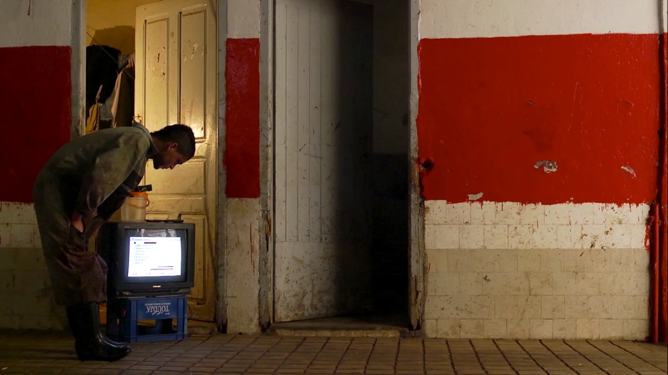 Le Black Movie projetait le 21 Janvier Dans ma tête en rond-point d’Hassen Ferhani qui, après une existence en festivals en 2015, avait bénéficié (pas en Suisse, il ne faudrait pas exagérer, bien qu’il ait été projeté au FIFF) d’une exploitation en salles l’année suivante accompagnée d’une certaine unanimité critique. Ne l’ayant pas vu alors, c’était l’occasion de le rattraper : retour sur un beau documentaire, qui n’a pas volé cette admiration et témoigne, sur un sujet propice à plusieurs écueils (l’imagerie forte des abattoirs étant facilement autoritaire), d’un vrai sens de la mise en scène, portée par une affection profonde pour ceux que la vie a poussé à accomplir pour les habitants d’Alger ce travail ingrat.